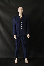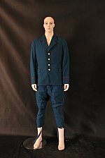Komplet Důstojník letectva - MODRÝ s MODRÝM pruhem - Blůza otevřená - zlatý knoflík, kapsy jen dole kalhoty do holinek