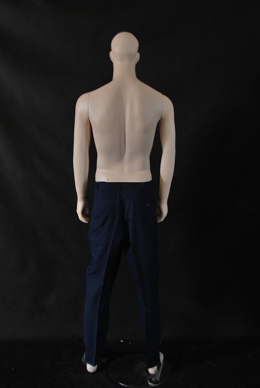 modré s řeveným pruhem na nohavici